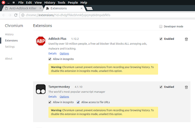 - Centang “Allow in incognito” pada AdBlock dan Tempermonkey.