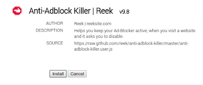 Setelah browser direstart dan ScriptManager terpasang, install Anti-AdBlock Killer dengan mengklik link berikut: